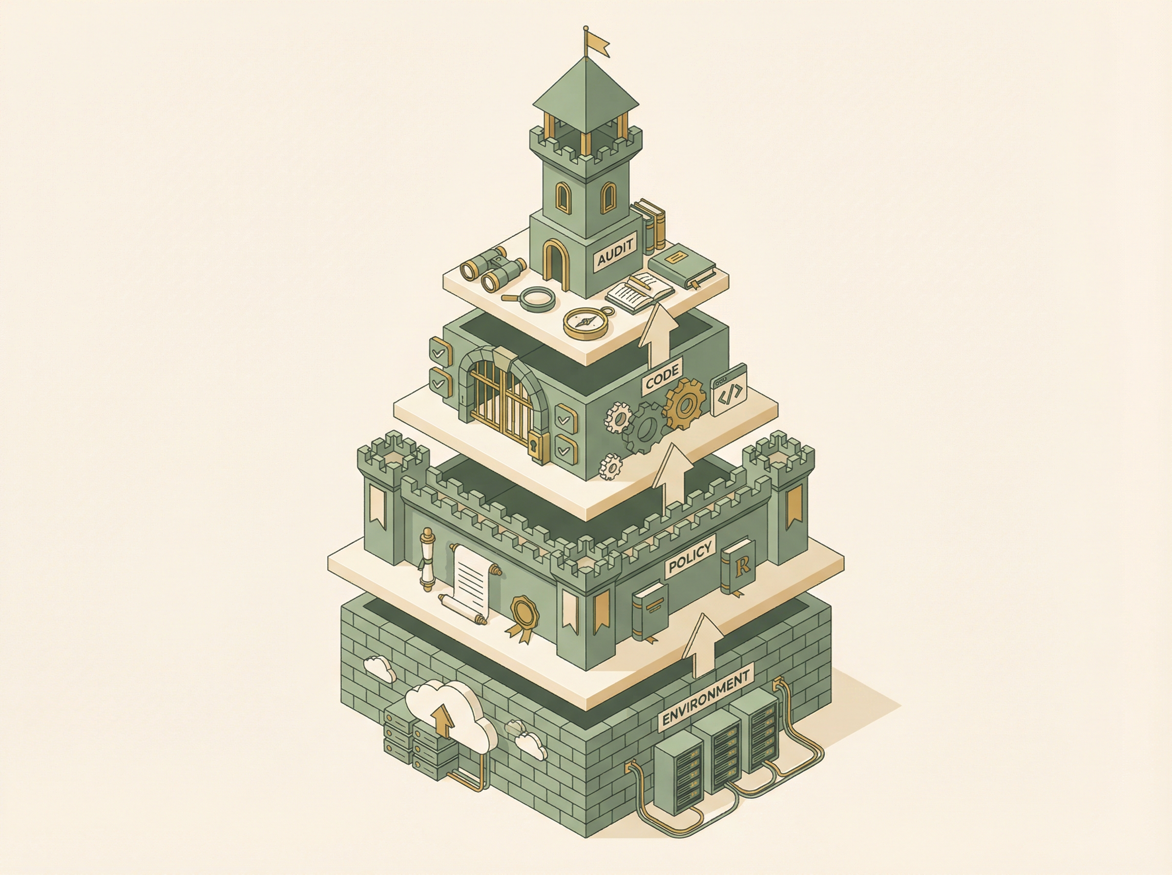 What won't change: defense in depth. Environment isolation. Clear policies. Automated enforcement. Continuous verification. Each layer catches what others miss.